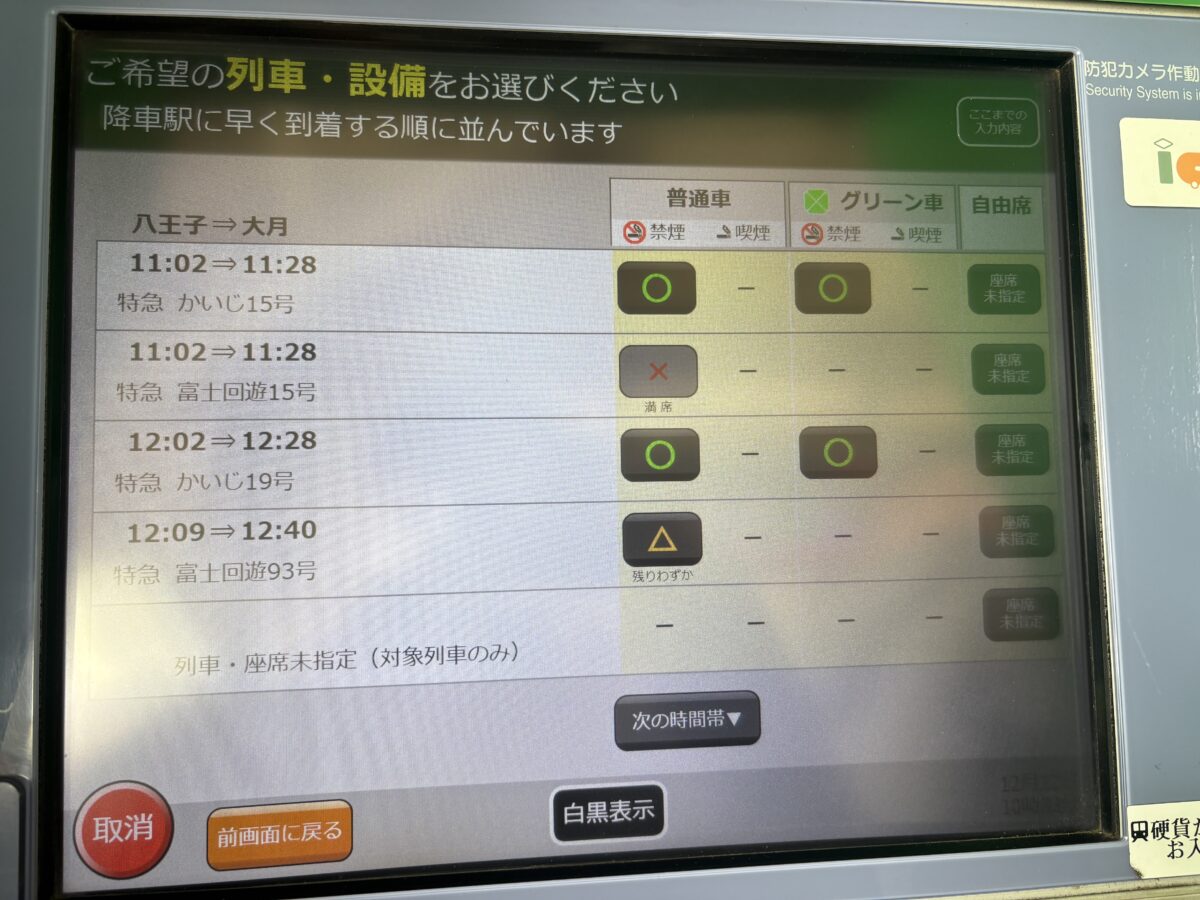 朝の9時ごろに自宅を出発。ひとまず八王子に出ます。時間的には「富士回遊」がちょうど来るのですが案の定満席。大月まで併結する「かいじ」に乗車して、大月で移動することにします。