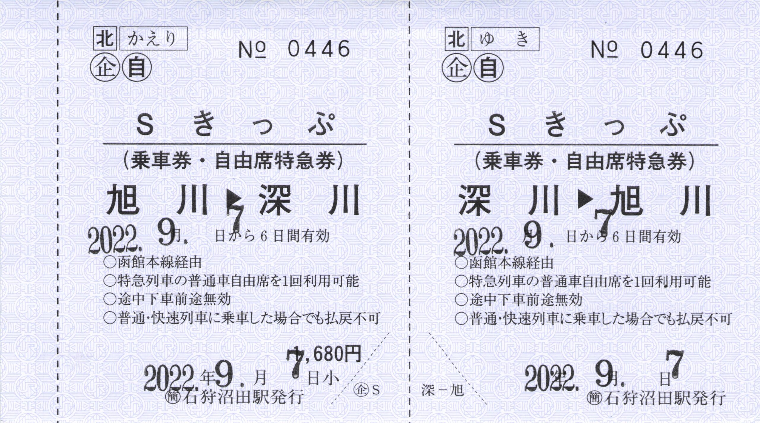 【きっぷ】JR北海道の自由席特急券