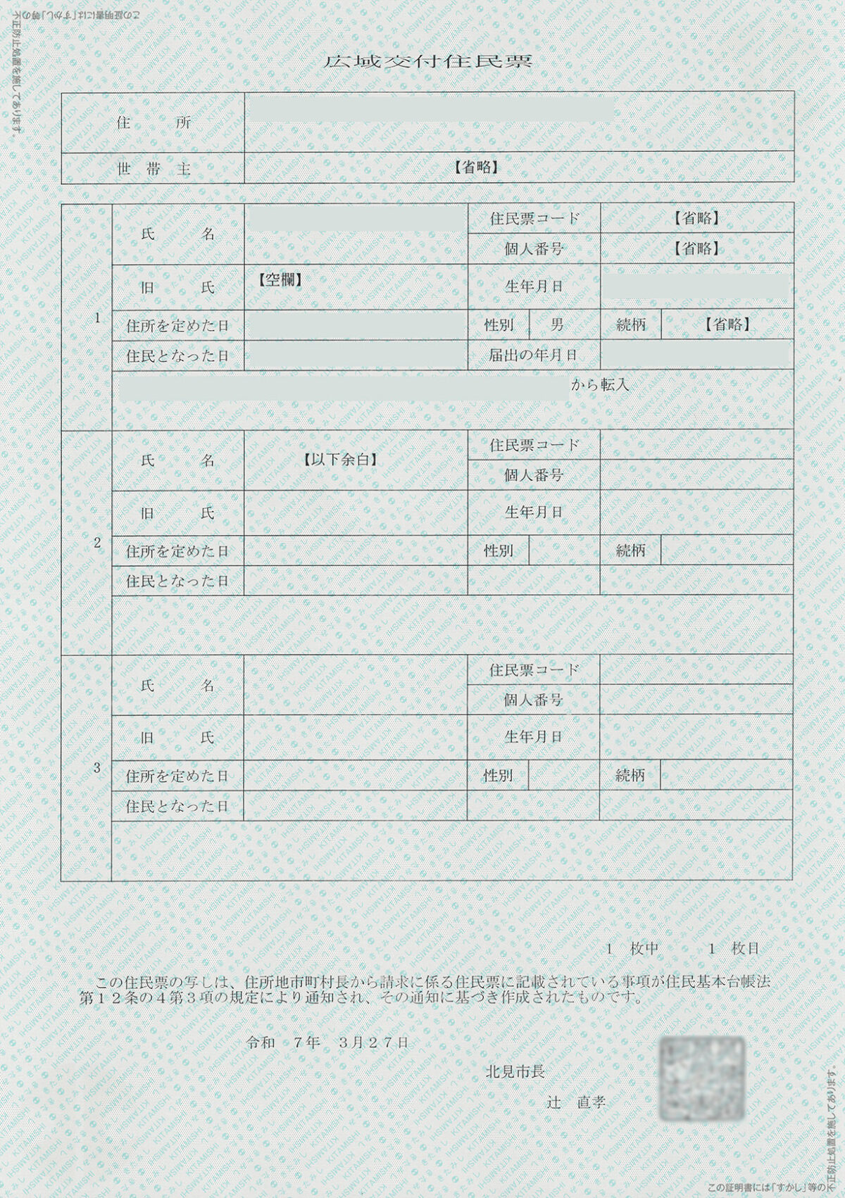 北海道 北見市 交付日 2025年3月27日 交付者 北見市長 交付箇所 北見市役所 用紙 改ざん防止用紙 公印 朱肉印 交付手数料 250円 キャッシュレス対応 対応 キャッシュレスURL リンク 公印の特徴 書体:篆書 文字配列:縦書き3段 改ざん防止用紙の特徴 灰色背景に緑色で「きたみし KITAMISHI」の文字 右上と左下に市章が浮かび上がる