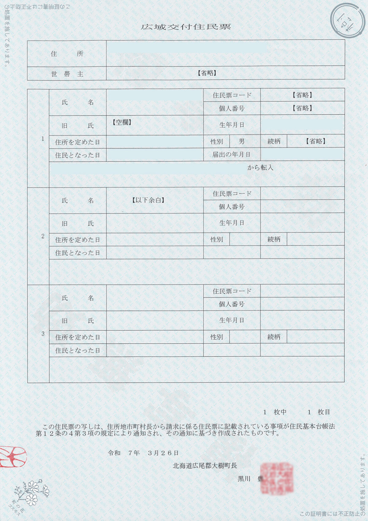 • 右上に町章